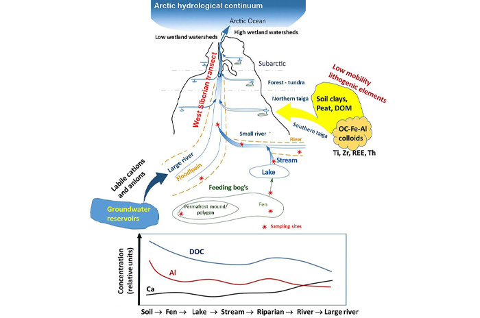 Ученые Томского государственного университета, Федерального исследовательского центра комплексного изучения Арктики РАН (Архангельск), Института мониторинга климатических и экологических систем Сибирского отделения РАН (Томск) и Университета Тулузы (Франция) исследовали путь растворенного органического углерода, парниковых газов и десятков химических элементов на 1500 км от южной тайги до сплошной мерзлоты тундры. В пробах почвенной воды, верхового болота, озера, прибрежной зоны, ручья и реки определяли концентрацию растворенного органического углерода, углекислого газа, метана и сорока других макро- и микроэлементов.